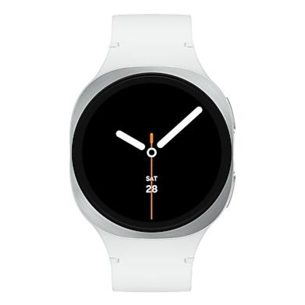 Summary Samsung Galaxy Watch 8. Display diagonal: 3.3 cm (1.3), Display technology: AMOLED, Display resolution: 438 x 438 pixels, Touchscreen. RAM capacity: 2000 MB, Flash memory: 32 GB. Wi-Fi. GPS (satellite). Battery capacity: 435 mAh. Weight: 30 g. Band colour: White. Operating system installed: Wear OS