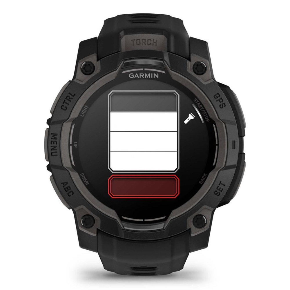 Garmin Instinct 3 AMOLED. Display diagonal: 3.05 cm (1.2), Display technology: AMOLED, Display resolution: 390 x 390 pixels, Touchscreen. Flash memory: 4 GB. GPS (satellite). Weight: 53 g. Band material: Silicone, Band colour: Black