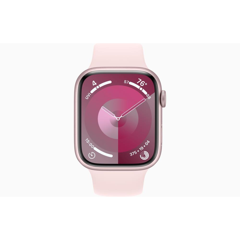 - Apple Watch Series 9 GPS 45mm Pink Aluminium Case with Light Pink Sport Band - S/M - Brighter Always-On Retina display with a durable, crack-resistant front crystal