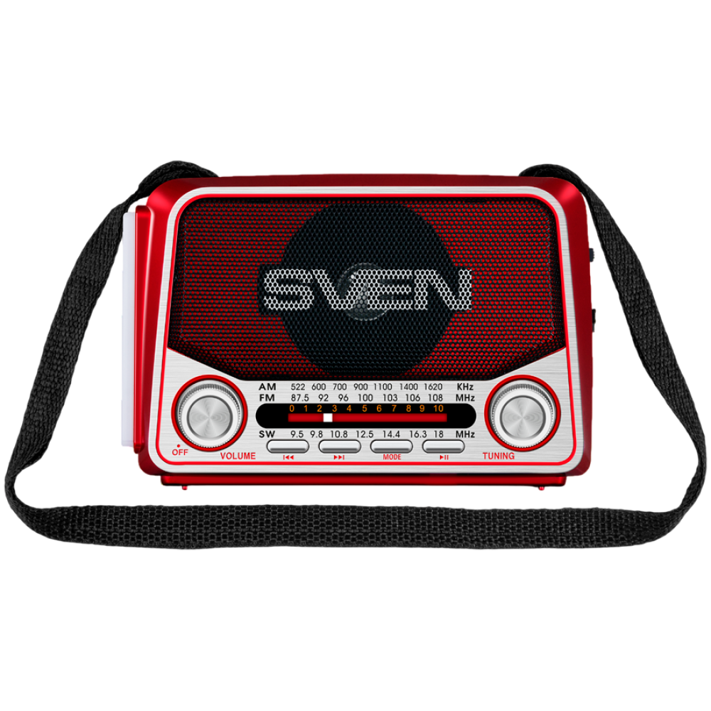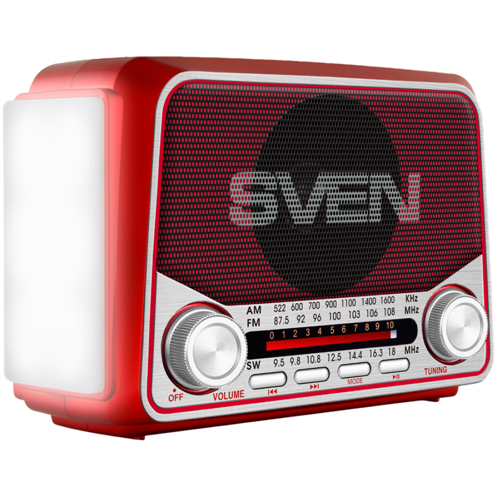 Speaker SVEN SRP-150, red (3W, Bluetooth, FM/AM/SW, USB, microSD, flashlight, battery)