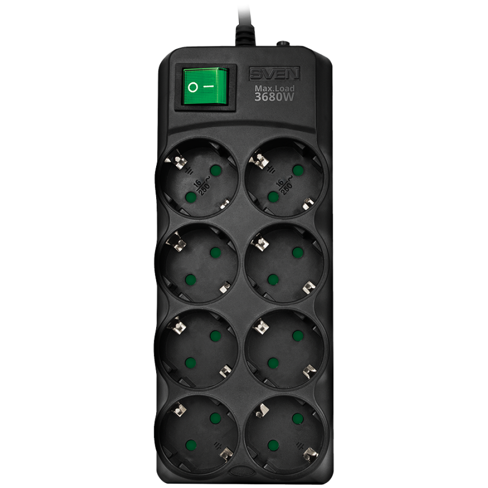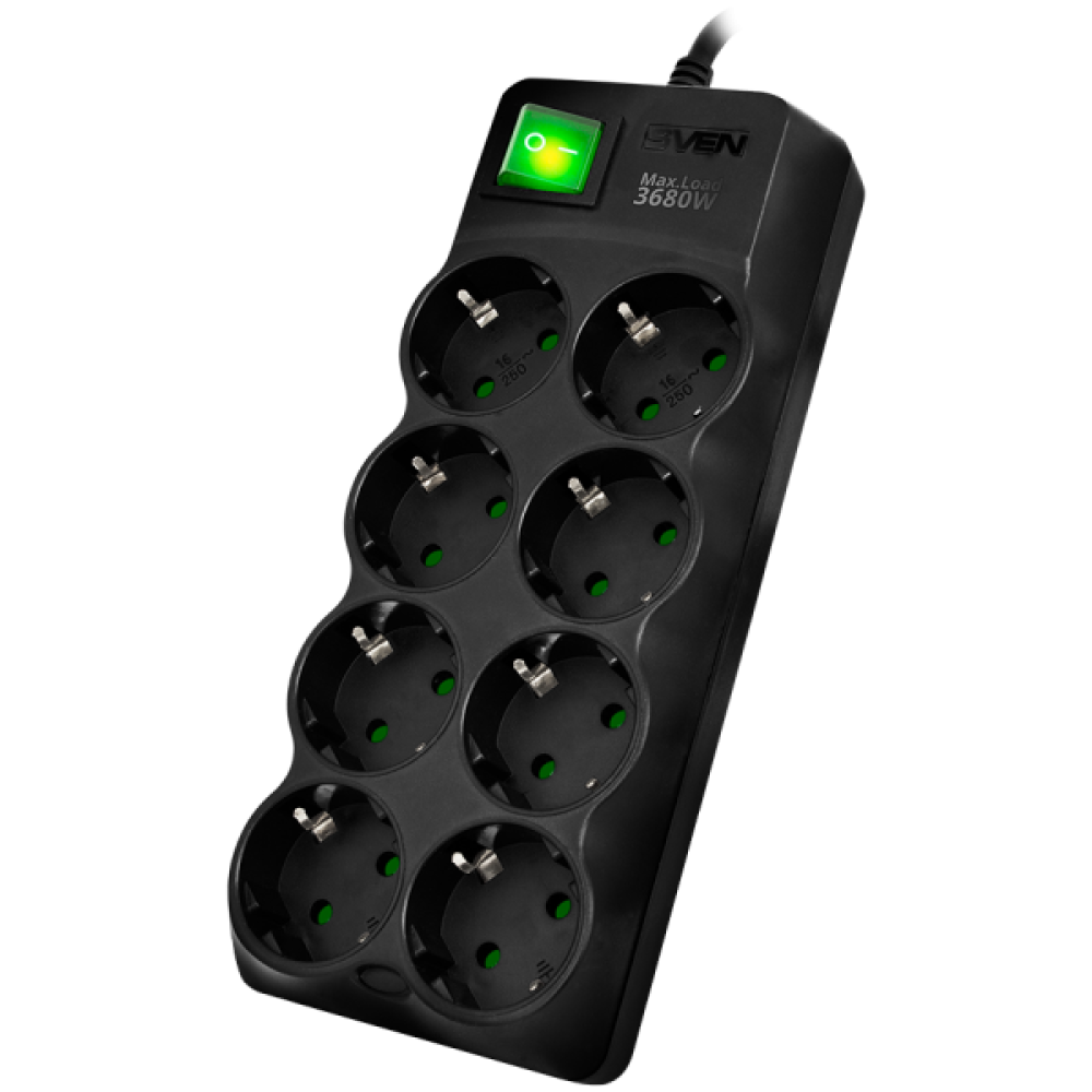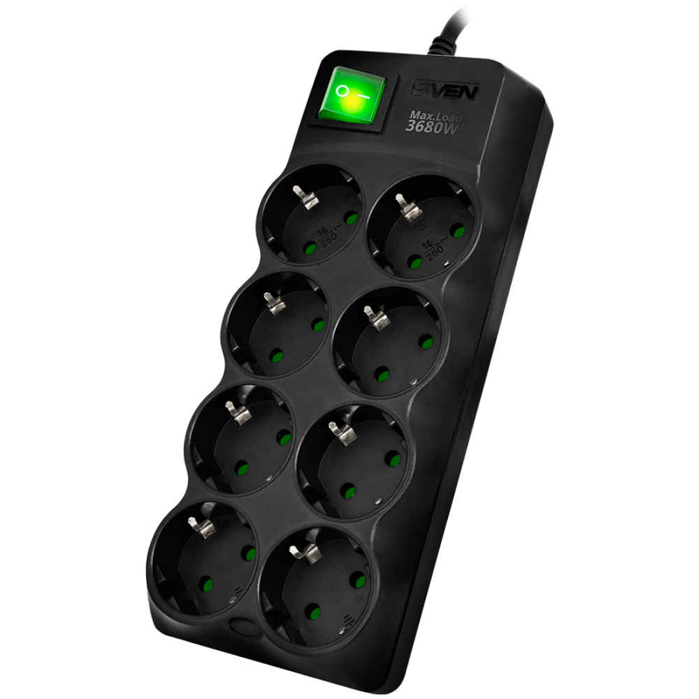 Surge Protector SVEN SF-08E-16 1,8 m, 16A, 3.6kW, (8 sockets with children protection), black