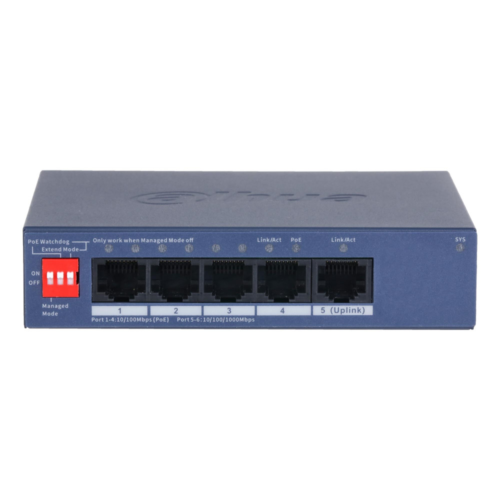 Switch, DAHUA, DH-CS4005-4ET1GT-36, Switch layer L2, 4xRJ-45 ports, RJ-45 Ports Type Fast Ethernet (10/100), 1xGigabit Ethernet (copper) ports quantity, 4xPower over Ethernet (PoE) ports quantity, Total Power over Ethernet (PoE) budget 36 W, CS4005-4ET1GT