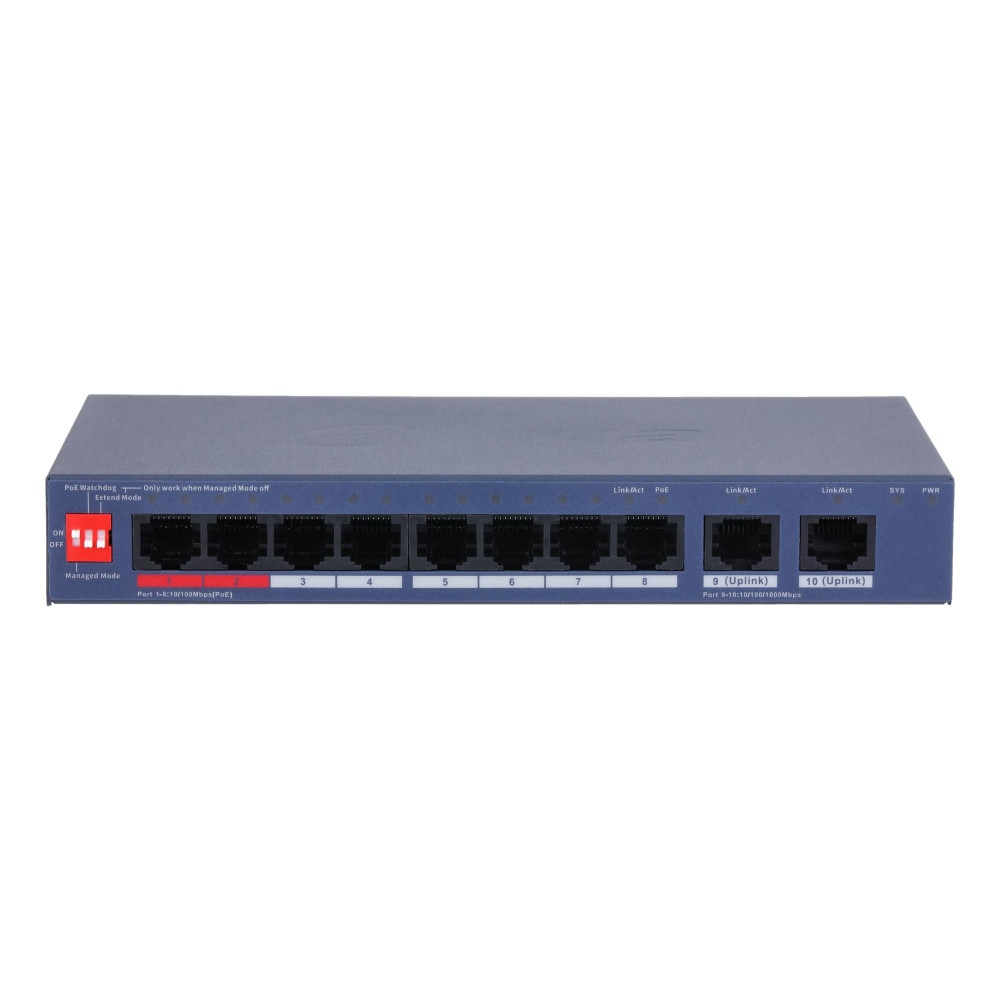 Switch, DAHUA, DH-CS4010-8ET2GT-110, Switch layer L2, 8xRJ-45 ports, RJ-45 Ports Type Fast Ethernet (10/100), 2xGigabit Ethernet (copper) ports quantity, 8xPower over Ethernet (PoE) ports quantity, Total Power over Ethernet (PoE) budget 110 W, CS4010-8ET2