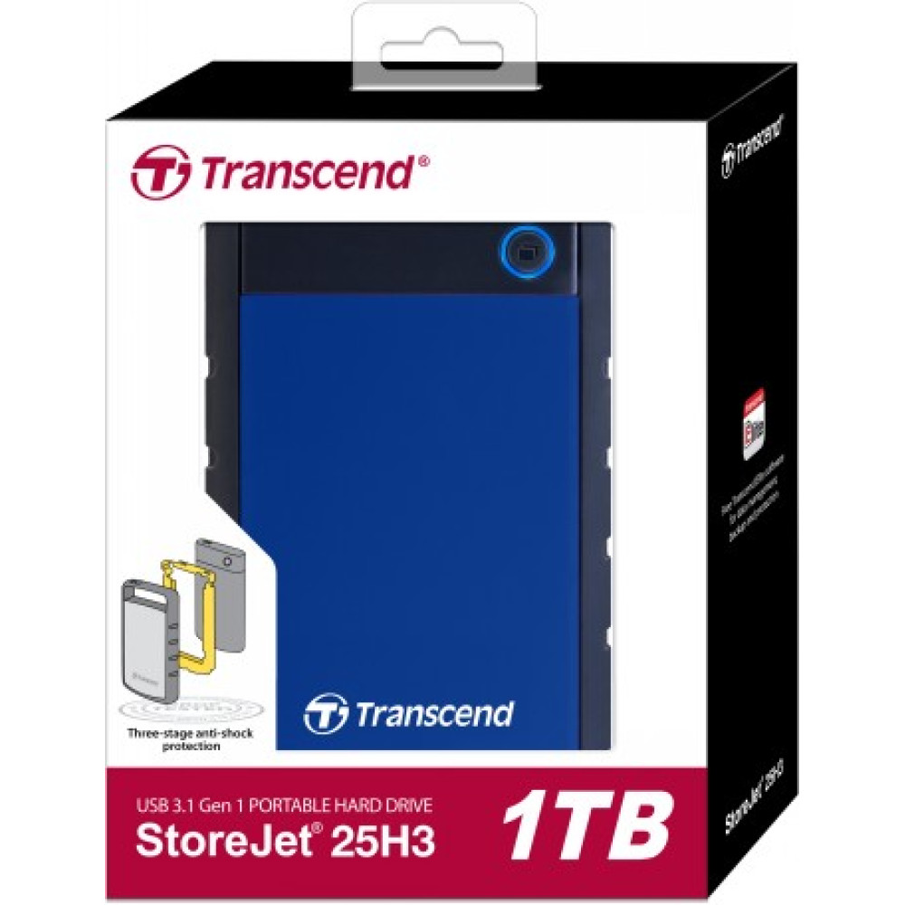 Transcend's StoreJet 25H3 ruggedized external hard drive combines supreme shock-resistant qualities with the USB 3.1 Gen 1 interface, allowing for ultra-fast file transfers and the highest level of anti-shock protection.