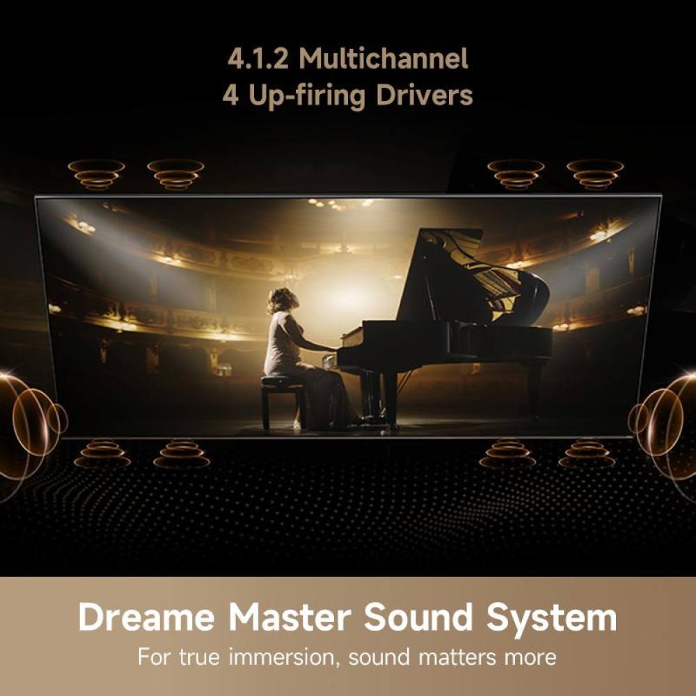 Dreame Aura Mini LED 4k TV S100. Display diagonal: 139.7 cm (55), Display resolution: 3840 x 2160 pixels, HD type: 4K Ultra HD, Display technology: QLED, Screen shape: Flat, LED backlighting type: Direct-lit LED. Smart TV. Display brightness: 350 cd/m², Response time: 8 ms, Native aspect ratio: 16:9. Digital signal format system: DVB-C, DVB-T, DVB-T2, DVB-S, DVB-S2. Wi-Fi, Ethernet LAN. Product colour: Black