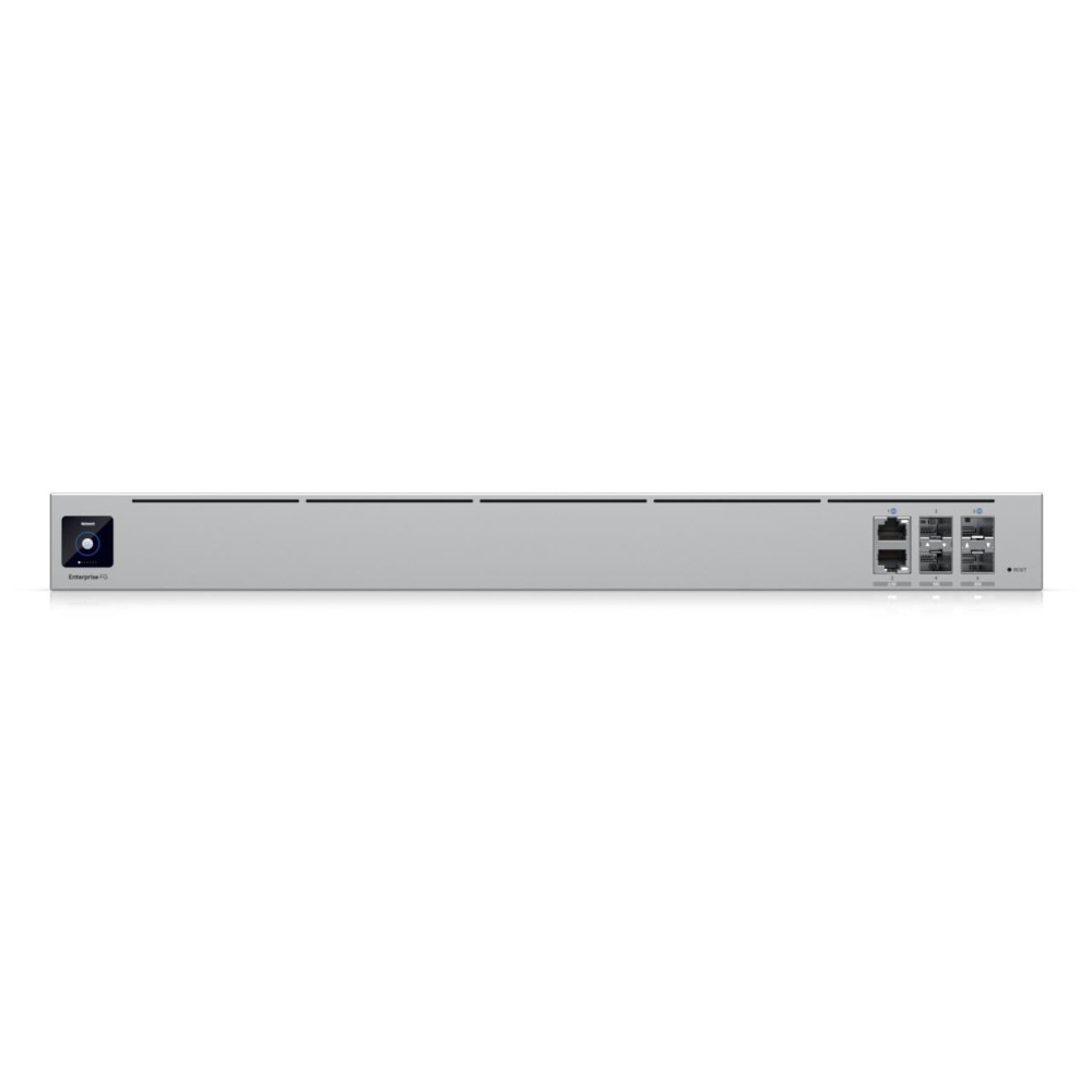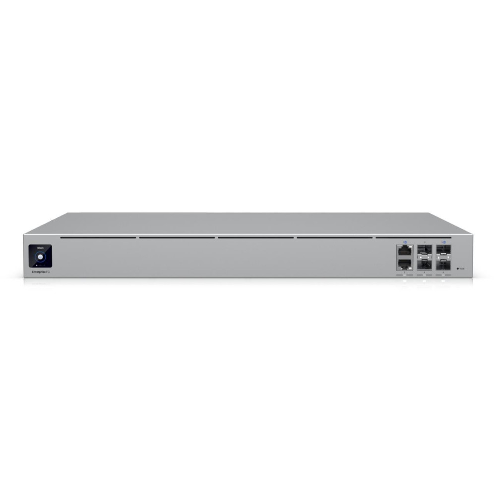 Summary Ubiquiti EFG. Product colour: Grey, Rack capacity: 1U, Enclosure material: Aluminium/SGCC. Display type: LCM, Processor manufacturer: ARM, Processor family: ARM Cortex. Ethernet LAN data rates: 10,100,1000,2500 Mbit/s, Firewall throughput: 23500 Mbit/s. WAN connection: Ethernet (RJ-45), SFP. Power consumption (max): 82 W, Input voltage: 100 - 240 V, Input frequency: 50/60 Hz