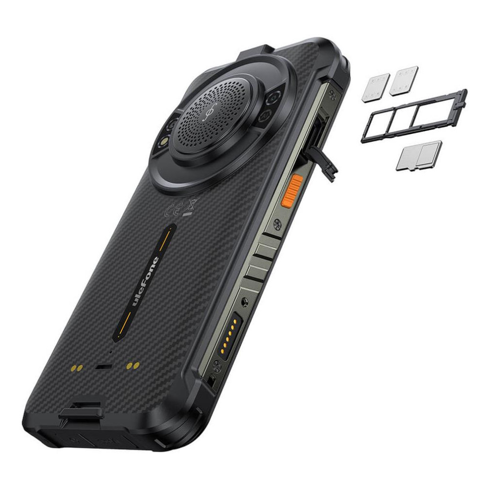 Ulefone RugKing. Display diagonal: 15.2 cm (5.99), Display resolution: 720 x 1440 pixels. Processor frequency: 2 GHz, Processor family: Unisoc, Processor model: T7255. RAM capacity: 8 GB, RAM type: LPDDR4X, Internal storage capacity: 256 GB. Rear camera resolution (numeric): 50 MP, Rear camera type: Dual camera. SIM card capability: Dual SIM. Operating system installed: Android 15. Battery capacity: 9600 mAh. Product colour: Black. Weight: 397 g