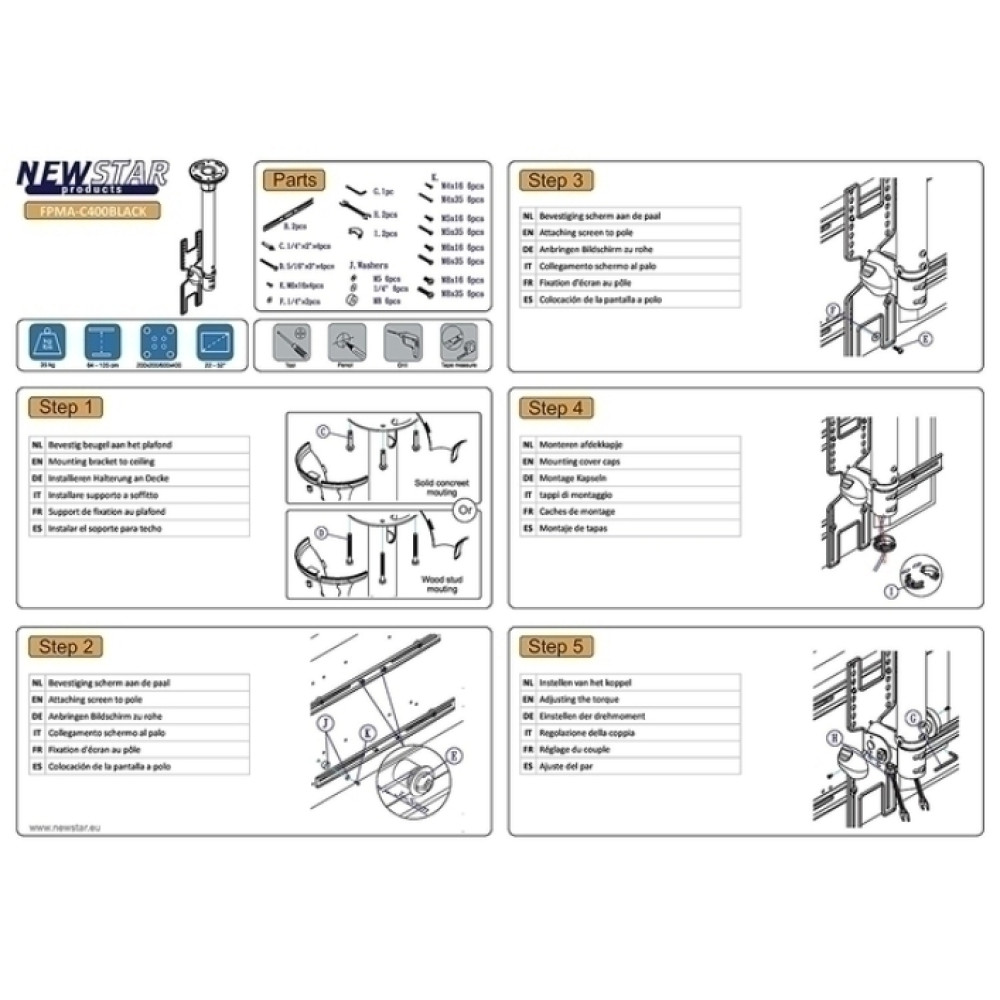 TV SET ACC CEILING MOUNT 22-52/FPMA-C400BLACK NEOMOUNTS
